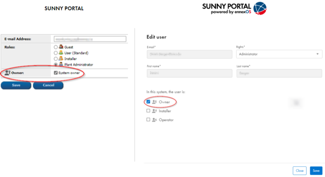 On SMA ennexOS: Ensure that the owner has the “owner-role” defined for his account